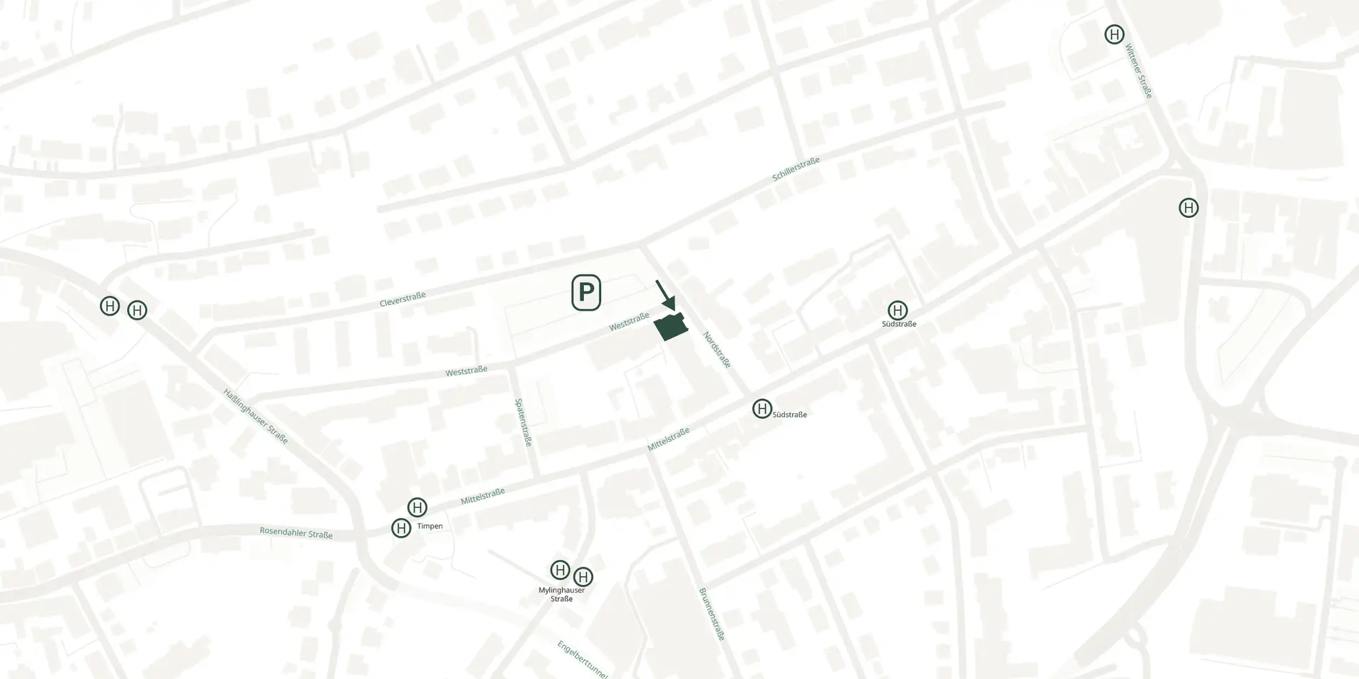 Parkmöglichkeiten sind in unmittelbarer Nähe (Parkplatz Weststraße) verfügbar.